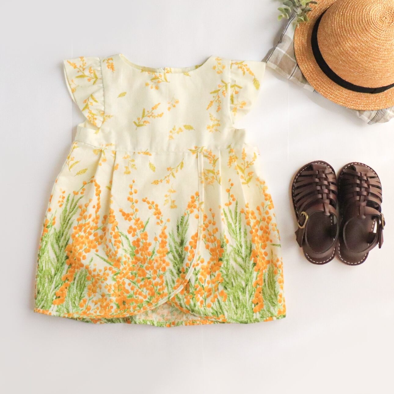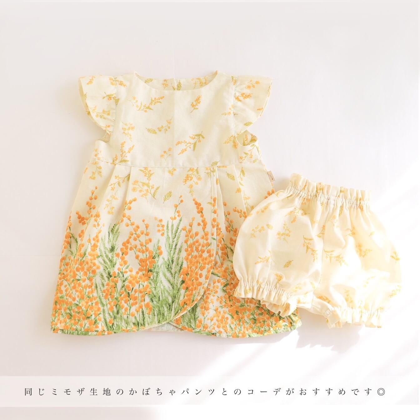 ミモザ柄ポワンスカートのワンピース《 80・90・100・110 》