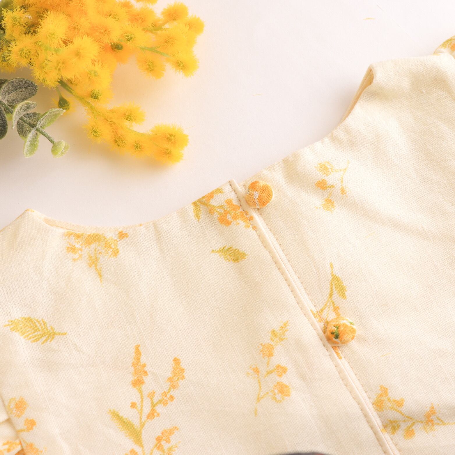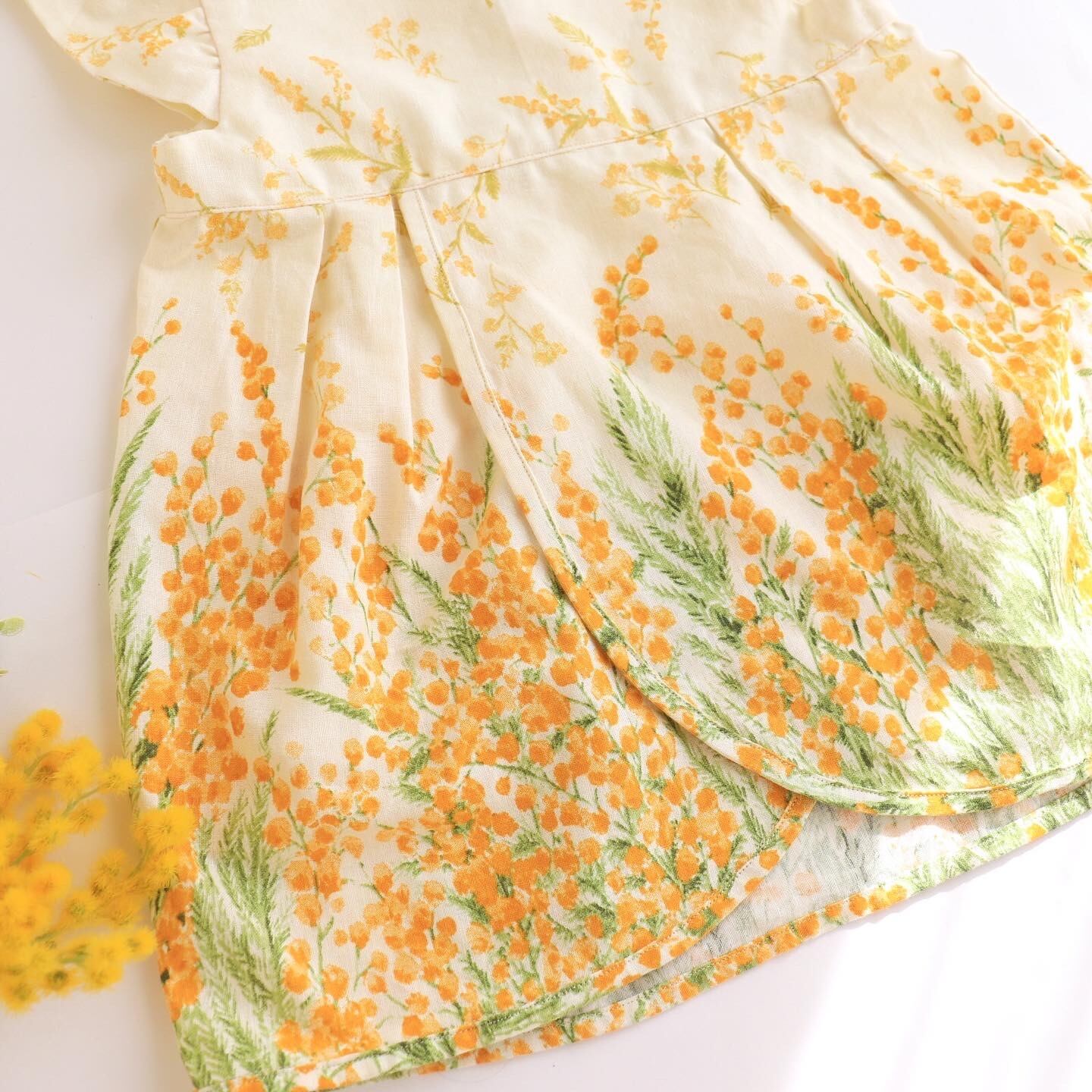 ミモザ柄のワンピース